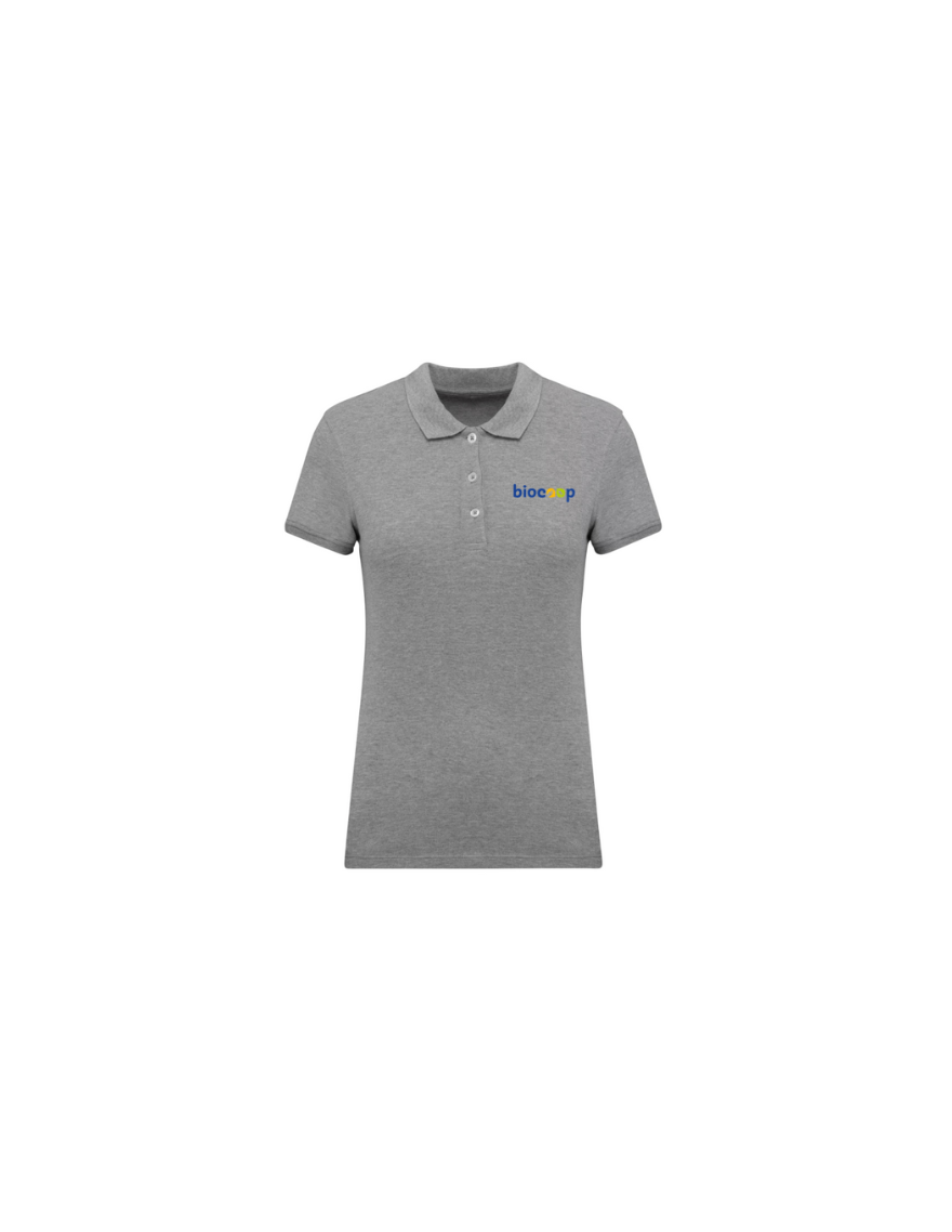 Polo femme manches courtes Oxford grey + BRODERIE CŒUR 3 couleurs sans fond
